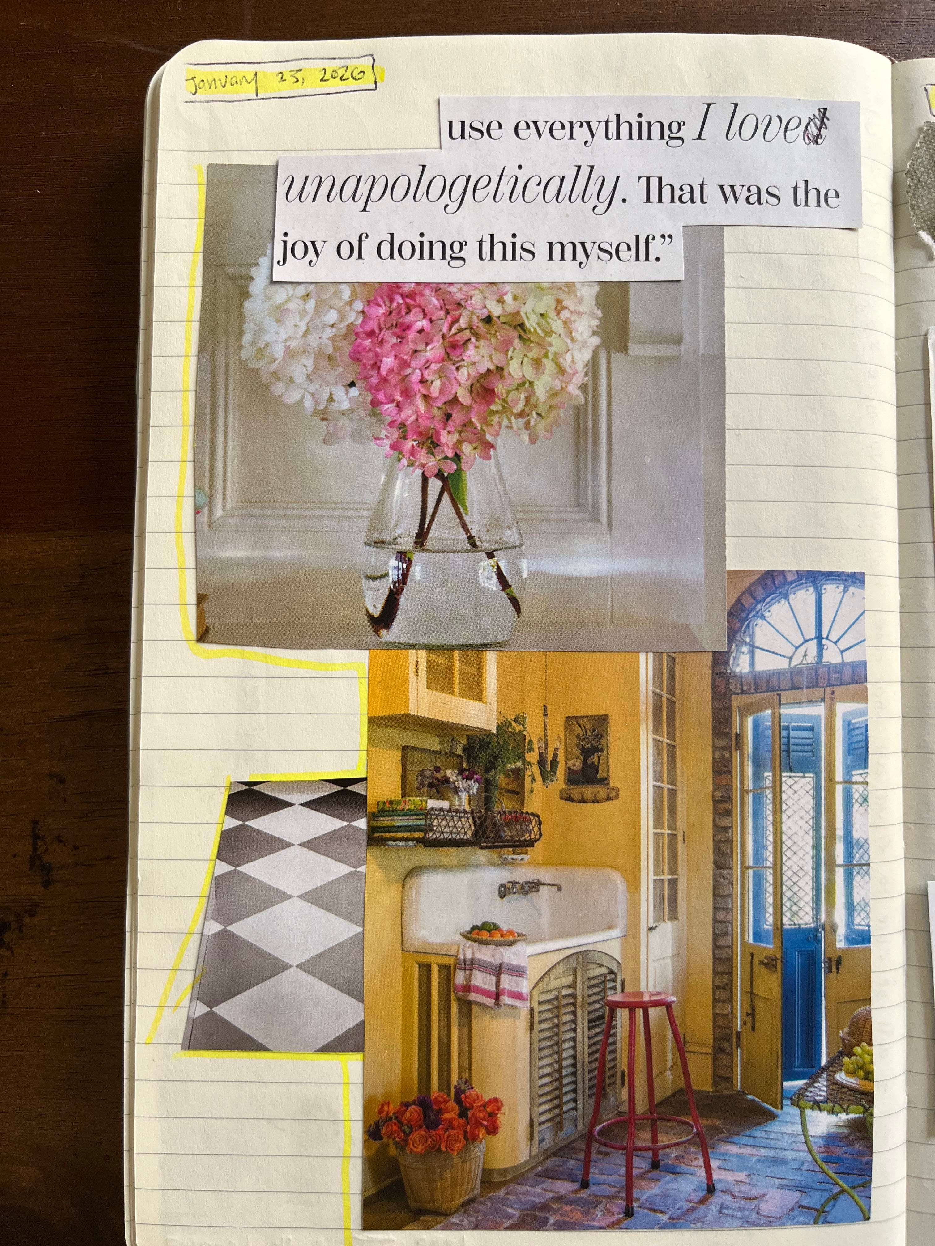 I’ve been noticing a theme in my collage journals (the last time I showed my collage journal it was quite popular, so here we are again).